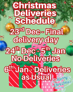 All orders should be placed and paid for as early as possible to avoid disappointment. We have a weight limit on the vans which we have to strictly adhere to, therefore it may not always be possible to add your order to the delivery run for the same week. Orders placed within 48 hours of the normal delivery run will automatically be added on for the following week.