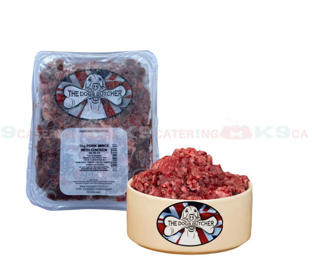 Enhance your dogโs diet with The Dogs Butcher Pork Mince with Chicken 80/10/10 (1kg). Our commitment to quality and nutrition ensures your dog enjoys a superior meal. Order today and experience the benefits of this premium raw food option for your furry friend. Discover the excellence of The Dogs Butcher, where quality meets care.